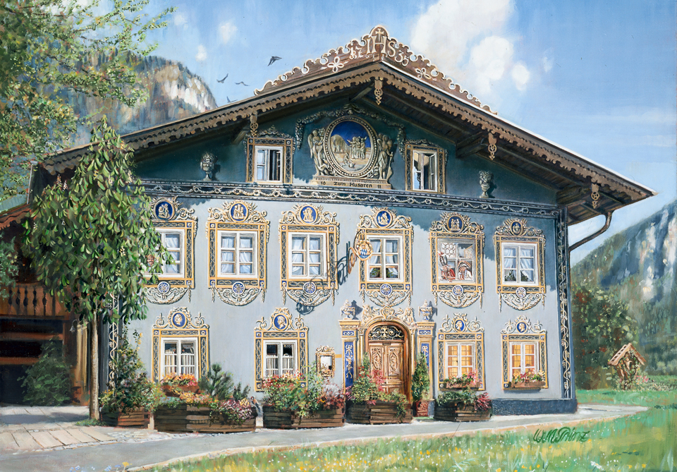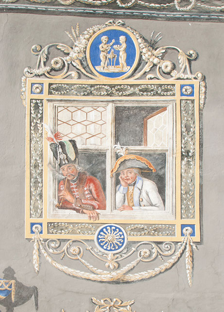 Der Lüftelmaler Zwink schuf als Besonderheit einen Husaren und Infanteristen an einem blinden Fenster