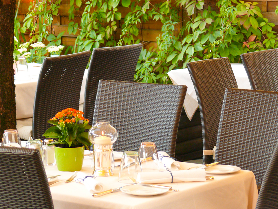 Im Sommer servieren wir auch auf unserer Terrasse mit Bergblick