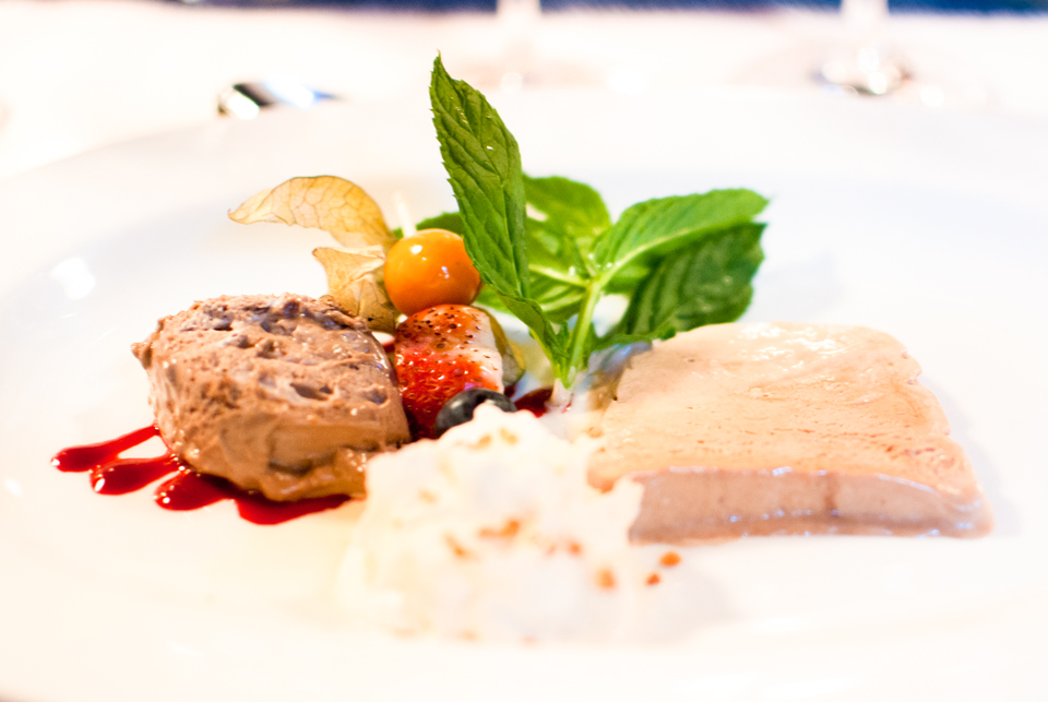 Dessertvariation von Mousse au Chocolat und Nougatparfait