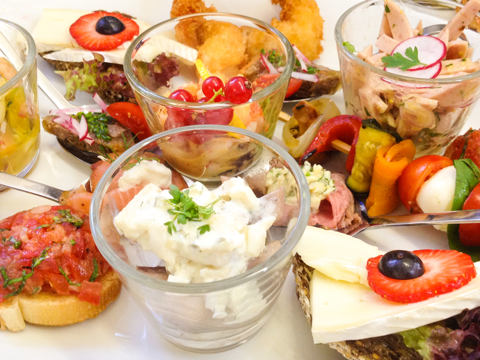Fingerfoodvariation u.a. mit Bruschetta, Antipastispießchen und Canapés